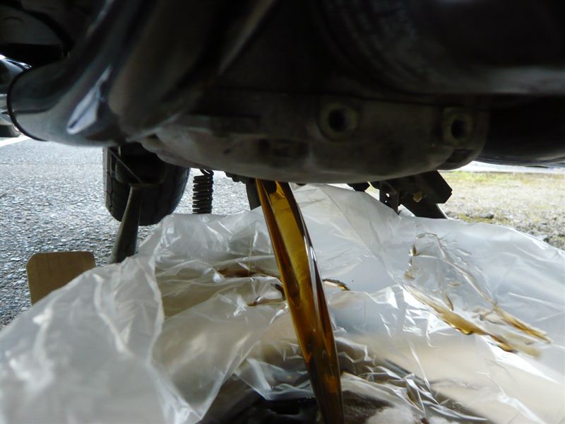 ②ドレンボルト(17mm)を外してオイルを抜きます。