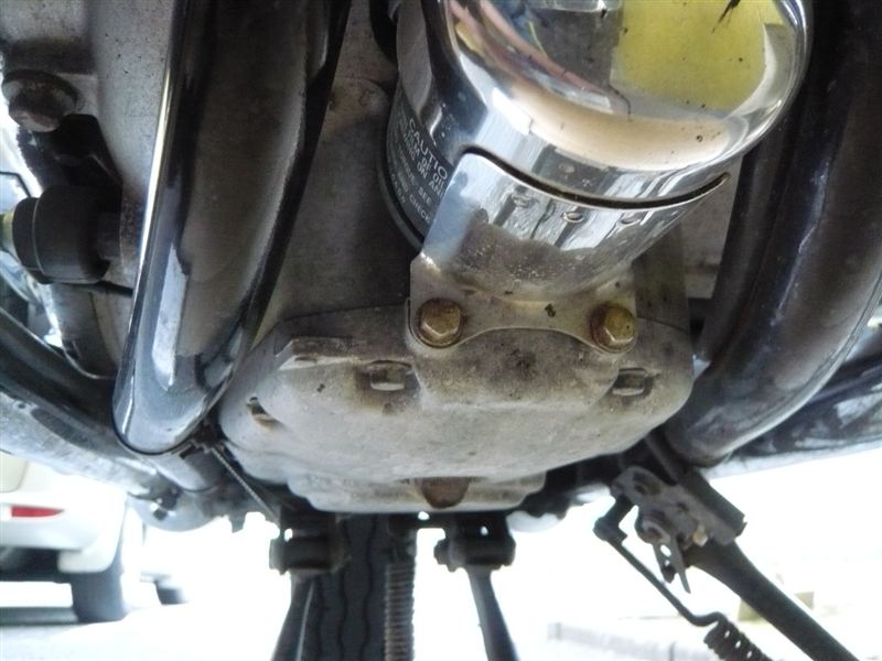 オイルフィルターカバーを外します。ボルト2本(8mm)で固定されています。